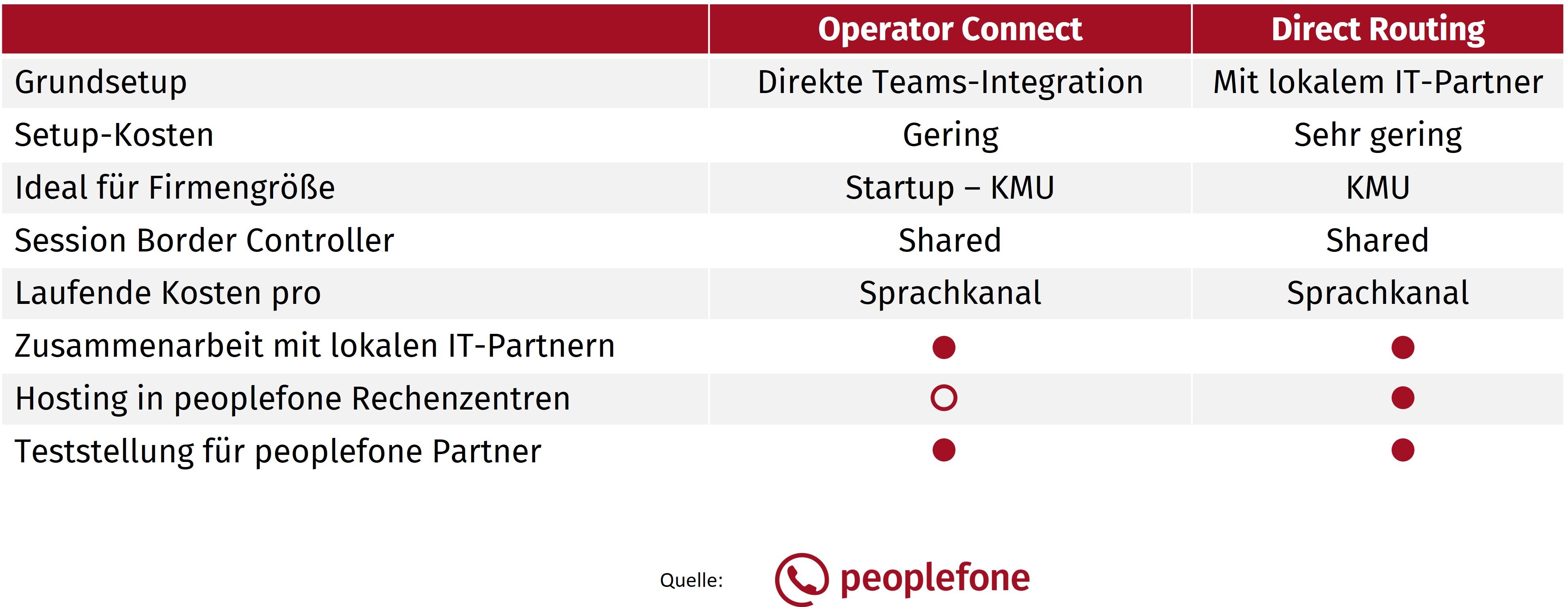 Direct Routing und Operator Connect bieten unterschiedliche Vorteile und eignen sich deswegen für unterschiedliche Firmen.