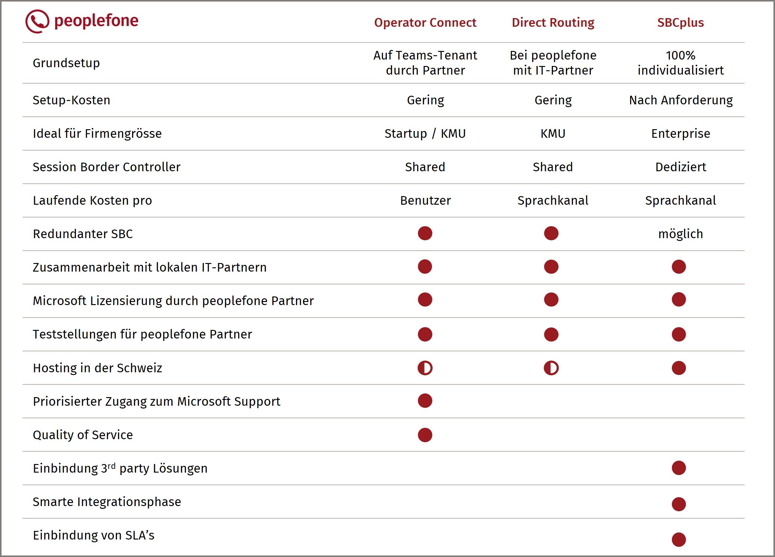 Direct Routing, Operator Connect und SBC plus bieten unterschiedliche Vorteile und eignen sich deswegen für unterschiedliche Firmen.