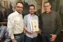 peoplefone Geschäftsführer und Urkunden-Kurier Felix Pflüger überreichte, in entspannter Runde der Comnia GmbH, die Auszeichnung zum GOLD-Partner an Manuel Bahlmann, für die hervorragende Beratungs- und Betreuungsleistung zu peoplefone Lösungen und Dienstleistungen.