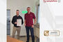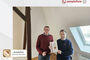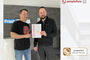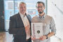 peoplefone Geschäftsführer und Urkunden-Kurier Felix Pflüger überreichte, in entspannter Runde der Comnia GmbH, die Auszeichnung zum GOLD-Partner an Manuel Bahlmann, für die hervorragende Beratungs- und Betreuungsleistung zu peoplefone Lösungen und Dienstleistungen.
