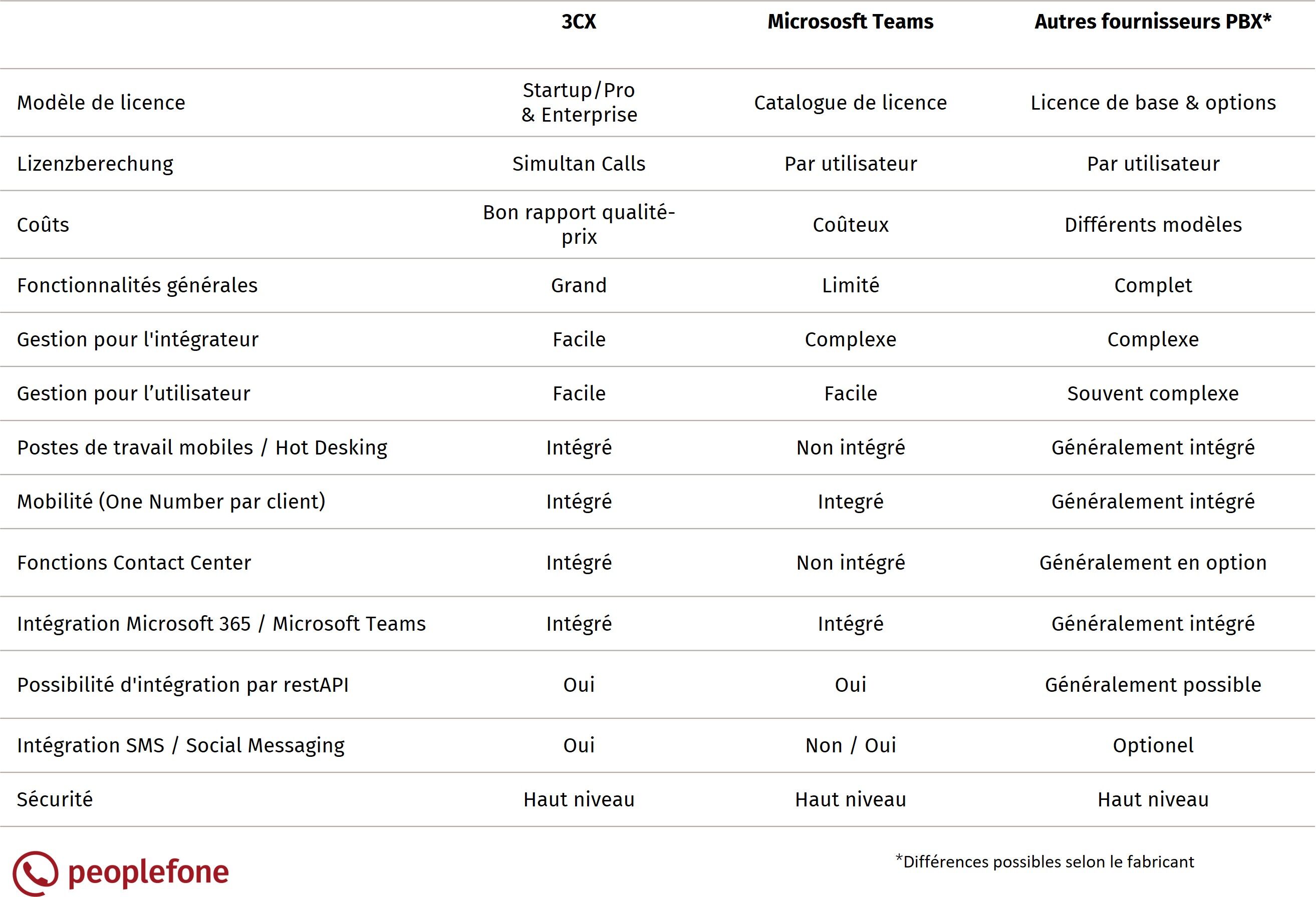 Vous pouvez commander peoplefone 3CX HOSTED en trois variantes différentes. Les variantes "Standard", "Pro" et "Enterprise" proposent les caractéristiques