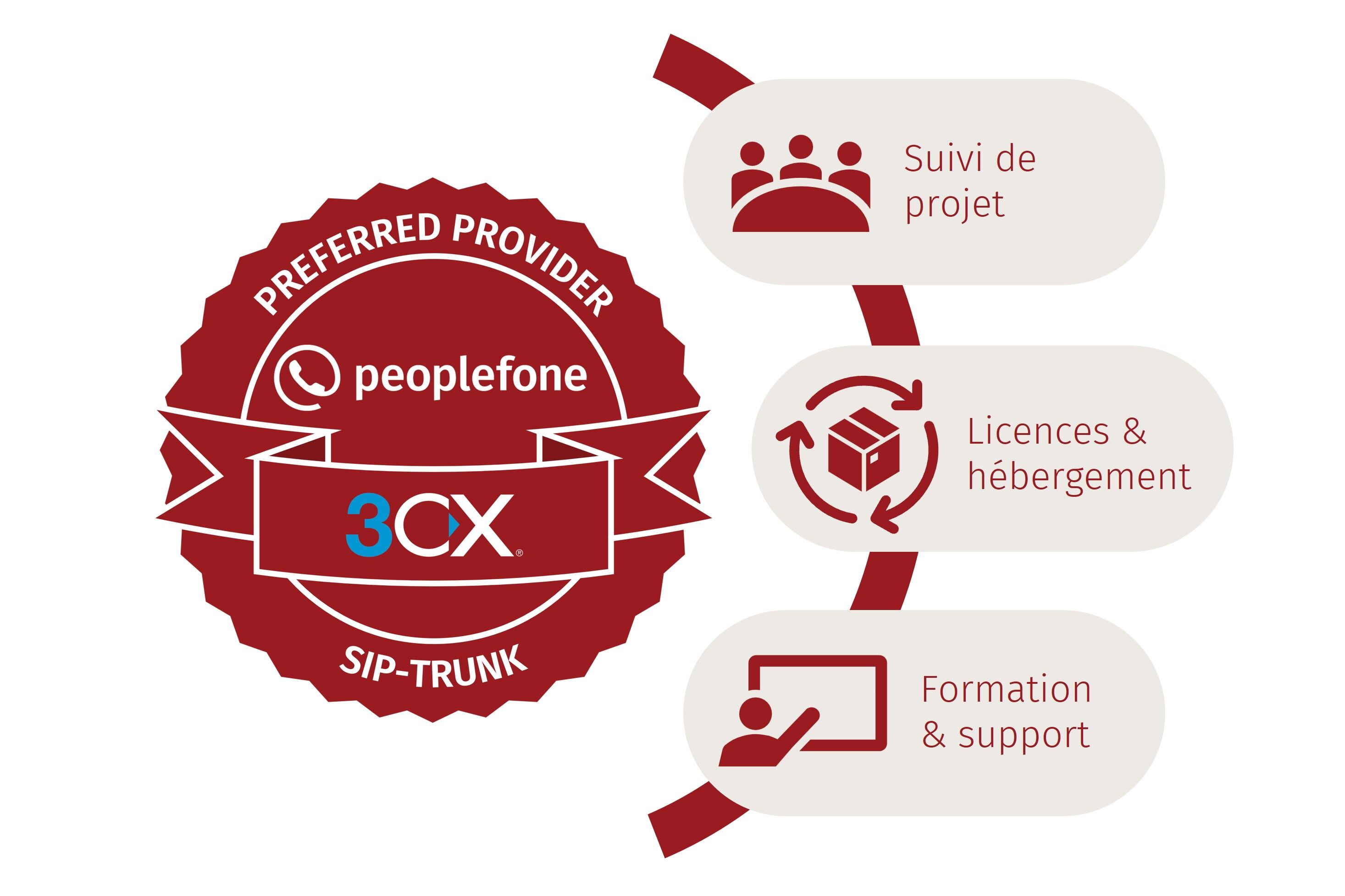 En tant que 3CX-Titanium Partner et 3CX Prefered Provider, peoplefone vous offre le package tout compris.