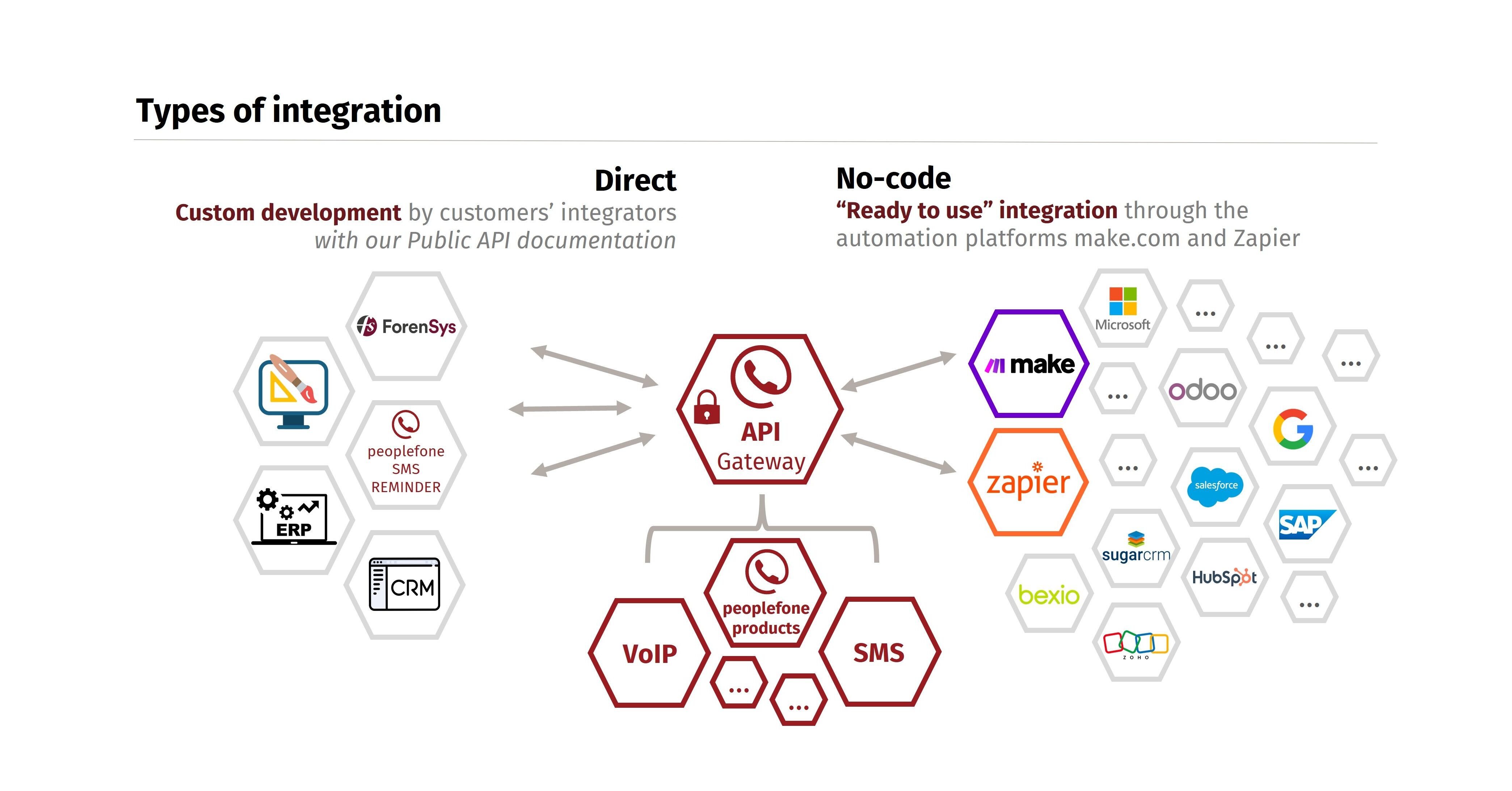 The peoplefone communication services are compatible with the automation platforms make.com and Zapier.