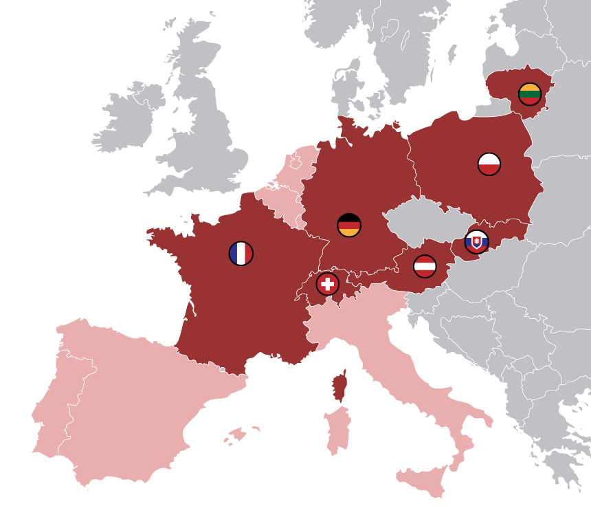 Un an après notre création, nous ouvrons notre site en Autriche. D'autres succursales viennent s'y ajouter : Pologne (2007), Slovaquie (2008), Lituanie (2012), Allemagne (2015) et France (2019).